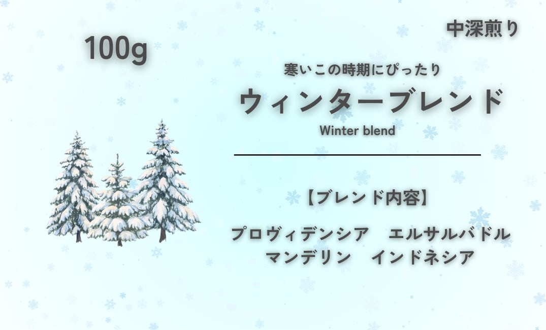 ほっと落ち着く苦みと余韻が、冷えた体と気持ちをゆっくりあたためてくれる、冬に寄り添うブレンドです。
